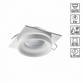Светодиодный встраиваемый неповоротный светильник с повышенной степенью пылевлагозащиты (IP44) подходит для установки во влажные помещения.