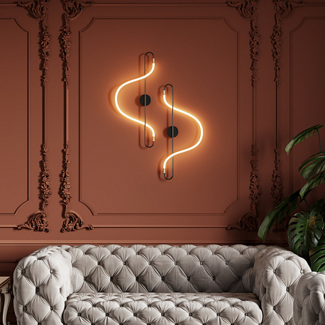 Настенные подсветки Keys — очень эклектичны: с одной стороны, открытый источник света имеет смелое настроение в стиле гранж, с другой, в светильнике покоряет элегантная плавность линий, напоминающая форму скрипичного ключа.