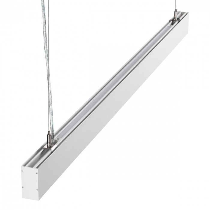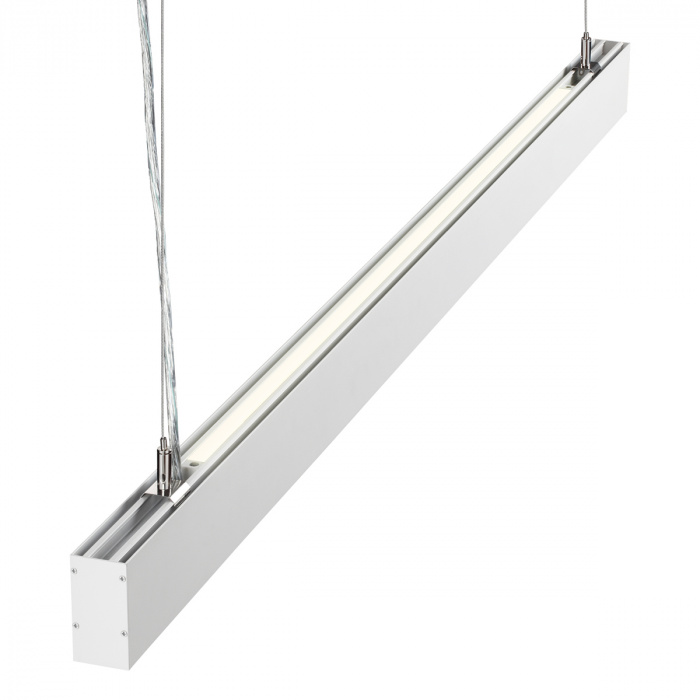 Линейные подвесные светодиодные светильники ITER. Удобное решение – купил и установил. Модельный ряд представлен: в двух размерах (Д)903 мм и (Д)1203мм, в двух классических цветах чёрном и белом. Способ установки только подвесной (подвесы в комплекте), потому что светильник светит вверх (12Вт) и вниз (40Вт). Драйвер электропитания размещается внутри светильника.