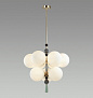 Воздушная линия светильников Palle декорирована керамикой ручной работы. В ней красиво сочетаются гофрированная керамика, металл, покрытый золотой гальваникой, и матовое белое стекло. Керамический декор выполнен в серых оттенках с акцентной светло-зеленой кисточкой и дополнен стеклянными черными бусинами. Подвесы и люстры имеют возможность регулировки высоты благодаря наборной штанге.