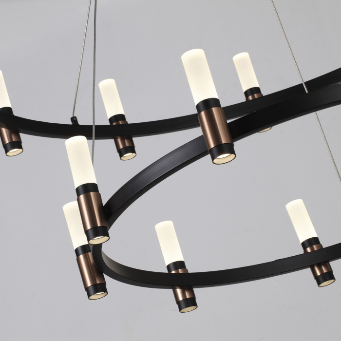 Линия Candel представлена несколькими светодиодными люстрами разных форм и размеров. Характерной особенностью моделей являются изящный дизайн и безупречное качество. Удачное сочетание черного и бронзово-медного оттенков придают линии современный вид. Семейство люстр представлено круглыми, сдвоенными, прямоугольными, каскадными люстрами больших размеров диаметром 95 и 175 см. Множество изящных стеклянных плафончиков словно свечки украшают люстры.