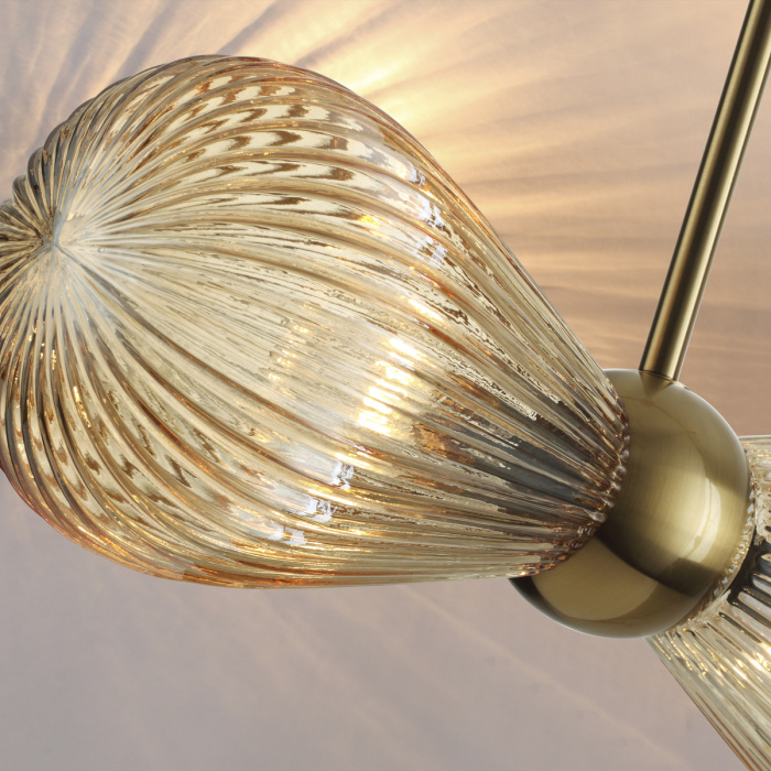 Линия светильников Elica, вдохновленная образом воздушных шаров в Каппадокии, станет идеальным украшением интерьера. Стекло коньячного цвета имеет многогранный узор, напоминающий сегменты воздушного шара, и создает красивую игру света на поверхностях. Высоту потолочной люстры линии Elica можно изменять благодаря наборным штангам.