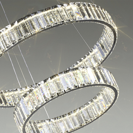 Линия Vekia — это трендовые светодиодные светильники в виде колец разного диаметра с ободом из хрусталя высочайшего качества. В комплект каждого кольца входят две базы: для установки с параллельными струнами (вариант 1) и с традиционным положением подвеса из струн (вариант 2). При помощи отдельной базы для композиций можно создавать комбинации из двух или трех колец. Отличительной особенностью этой линии является использование высокоэффективных светодиодов со световой отдачей 100 лм/Вт, что обеспечивает высокую яркость освещения.