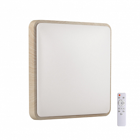 Светильник 7608/EL линии MERTO состоит из металлического основания (базы) и пластикового рассеивателя. Материал рассеивателя — высококачественный пластик марки PMMA 2.0 белого цвета с матовой поверхностью без текстуры. Пластик обеспечивает светильнику равномерное рассеивание и хорошее светопропускание. Форма плафона: квадратная, декорирована ободом из пластика бежевого, цвета под дерево. Степень защиты IP43 позволяет использовать светильник в определенных зонах влажных помещений. В комплект входит заменяемый LED-модуль с линзами мощностью 72 Вт, соответствующей лампе накаливания 730 Вт, а также пульт ДУ, с помощью которого осуществляется плавное изменение цветовой температуры в диапазоне 3000—6300 К, изменение яркости, переход в режим переключения теплого/белого/холодного/ночного света. Светильник имеет функцию памяти.