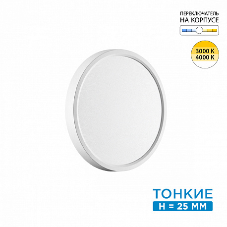 Корпус светильника линии ALFA WHITE изготовлен из высококачественного противоударного ABS пластика белого цвета. Светильник имеет небольшую высоту, всего 25 мм, тонкий незаметный ободок и обладаем равномерным распределением света без слепящего эффекта за счет микропризматического рассеивателя. Линия ALFA оснащена переключателем цветовой температуры на тыльной стороне. Температура устанавливается перед монтажом в соответствии с вашими предпочтениями. Накладной светильник имеет удобную систему поверхностного монтажа — монтажную платформу.