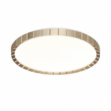 Светильник 7648/DL линии ATABI GOLD состоит из металлического основания (базы) и пластикового рассеивателя. Материал рассеивателя — высококачественный пластик марки PMMA 2.0 белого цвета с матовой поверхностью без текстуры. Пластик обеспечивает светильнику равномерное рассеивание и хорошее светопропускание. Форма плафона: круглая, декорирована ободом из пластика золотого цвета с объемной структурой. Степень защиты IP43 позволяет использовать светильник в определенных зонах влажных помещений. В комплект входит заменяемый LED-модуль с линзами мощностью 70 Вт, соответствующей лампе накаливания 610 Вт, а также пульт ДУ (с креплением на стену), с помощью которого осуществляется плавное изменение цветовой температуры в диапазоне 3000—6000 К, изменение яркости, переход в режим переключения теплого/белого/холодного/ночного света. Светильник имеет функцию памяти.