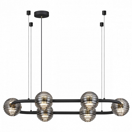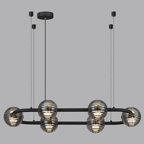Линия Troni — роскошные кольца со стеклянными плафонами из двух полусфер. LED-элемент красиво рассеивает свет сквозь рифленую текстуру дымчатого стекла вверх и вниз. Из колец диаметром 630, 930 и 1130 мм можно создавать композиции на два и три кольца. Модель овальной формы отлично подойдет для размещения над обеденной или рабочей зоной. Одиночный подвес и бра дополняют линейку светильников линии Troni.