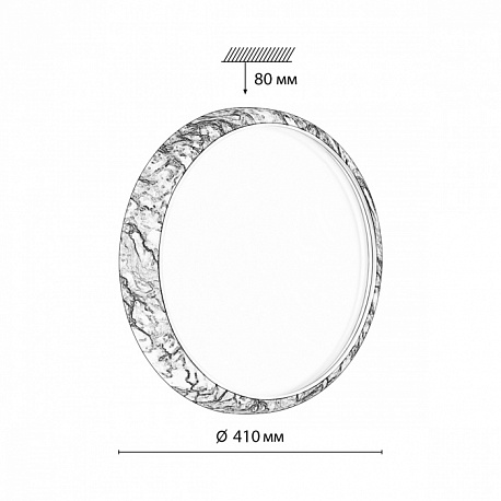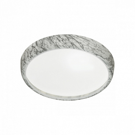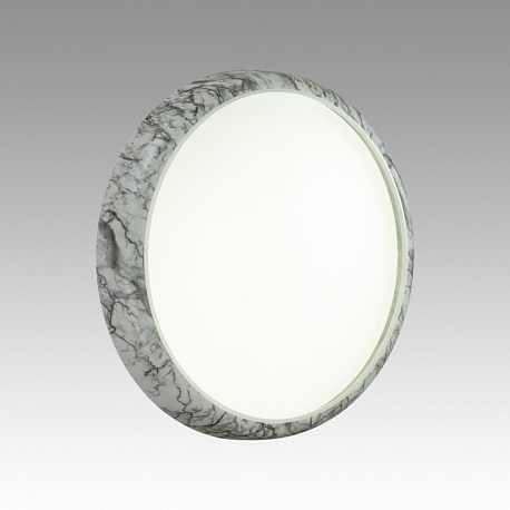 Светильник 7638/EL линии MRAMO WHITE состоит из металлического основания (базы) и пластикового рассеивателя. Материал рассеивателя — высококачественный пластик марки PMMA 2.0 белого цвета с матовой поверхностью без текстуры. Пластик обеспечивает светильнику равномерное рассеивание и хорошее светопропускание. Форма плафона: круглая, декорирована ободом под мрамор из пластика белого и черного цветов. Степень защиты IP43 позволяет использовать светильник в определенных зонах влажных помещений. В комплект входит заменяемый LED-модуль с линзами мощностью 70 Вт, соответствующей лампе накаливания 610 Вт, а также пульт ДУ (с креплением на стену), с помощью которого осуществляется плавное изменение цветовой температуры в диапазоне 3000—6000 К, изменение яркости, переход в режим переключения теплого/белого/холодного/ночного света. Светильник имеет функцию памяти.