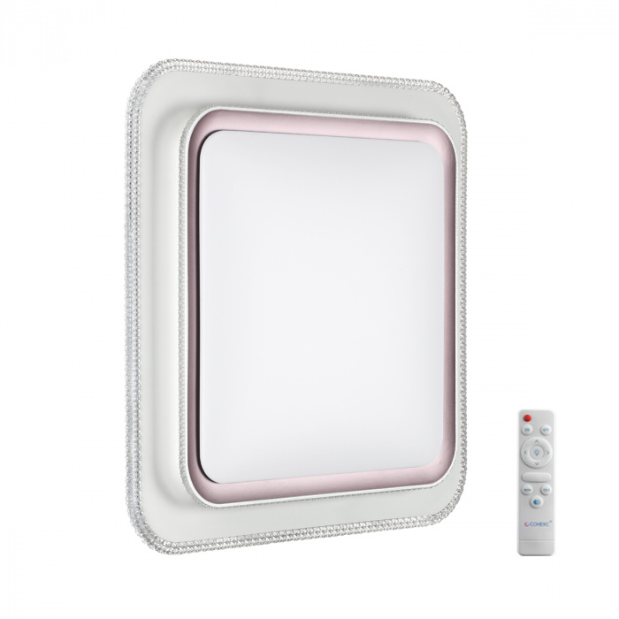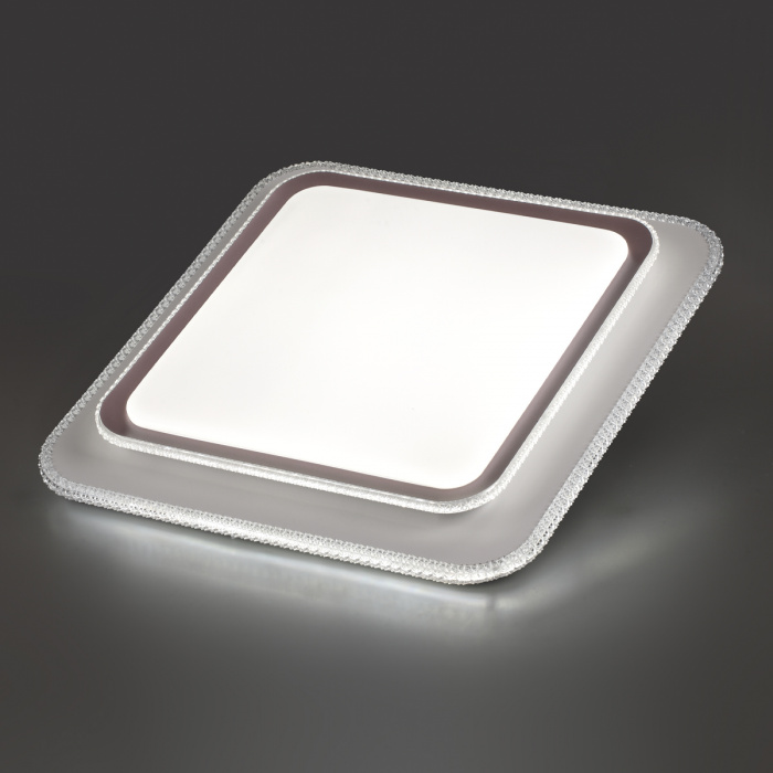 Светильник 7683/EL линии LOSY состоит из металлического основания (базы) и пластикового рассеивателя. Материал рассеивателя — высококачественный пластик марки PMMA 2.0 белого цвета с матовой поверхностью без текстуры. Пластик обеспечивает светильнику равномерное рассеивание и хорошее светопропускание. Форма плафона: квадратная, декорирована ободом из пластика, цвет кофе. Обод украшен прозрачной вставкой под хрусталь. Степень защиты IP43 позволяет использовать светильник в определенных зонах влажных помещений. В комплект входит заменяемый LED-модуль с линзами мощностью 70 Вт, соответствующей лампе накаливания 610 Вт, а также пульт ДУ (с креплением на стену), с помощью которого осуществляется плавное изменение цветовой температуры в диапазоне 3000—6000 К, изменение яркости, переход в режим переключения теплого/белого/холодного/ночного света. Светильник имеет функцию памяти.