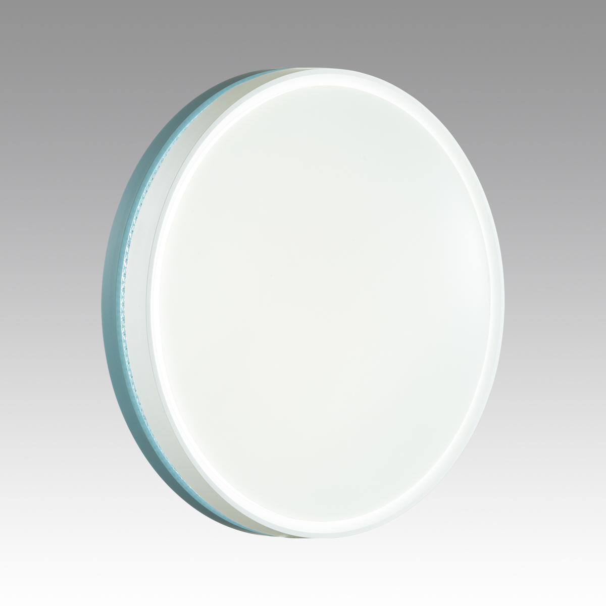 Светильник 7669/EL линии NOHAVA BLUE состоит из металлического основания (базы) и пластикового рассеивателя. Материал рассеивателя — высококачественный пластик марки PMMA 2.0 белого цвета с матовой поверхностью. Пластик обеспечивает светильнику равномерное рассеивание и хорошее светопропускание. Форма плафона: круглая, декорирована ободом из пластика голубого цвета у основания светильники и белого цвета у внешнего края. Обод украшен прозрачной декоративной вставкой под хрусталь. Степень защиты IP43 позволяет использовать светильник в определенных зонах влажных помещений. В комплект входит заменяемый LED-модуль с линзами мощностью 70 Вт, соответствующей лампе накаливания 610 Вт, а также пульт ДУ (с креплением на стену), с помощью которого осуществляется плавное изменение цветовой температуры в диапазоне 3000—6000 К, изменение яркости, переход в режим переключения теплого/белого/холодного/ночного света. Светильник имеет функцию памяти.