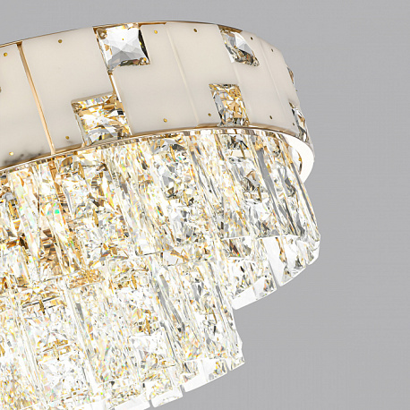Линия Chessi — это абсолютная новинка, роскошное сочетание элементов из алебастра и хрусталя. Комбинированный декоративный обод и хрустальные подвески образуют очень красивые модели. Люстры в трех диаметрах, овальный светильник и бра объединены в прекрасную коллекцию, которой можно осветить большое помещение в одном стиле. Стандартный цоколь Е14 позволяет установить светодиодные лампы, в свете которых алебастр еще больше раскроется и поразит всех невероятной белизной природного камня.