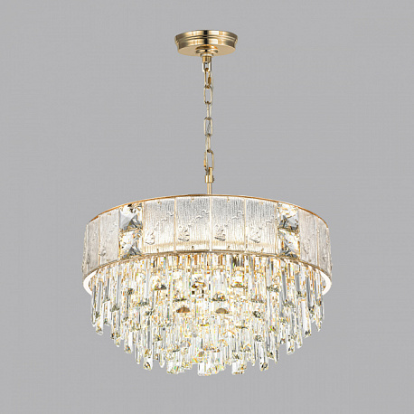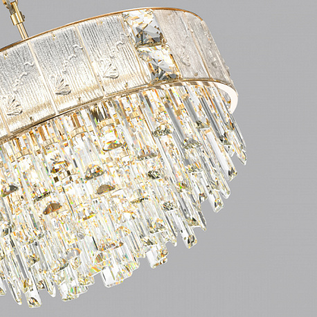 Линия Fiesta — это красивое сочетание фактурного экстра белого стекла, вставок из высококачественного хрусталя и хрустальных подвесок. Использование стекла с растительными мотивами придает моделям особую утонченность. Люстры в трех диаметрах: 500,600 и 800 мм, овальный светильник длиной 1000 мм и бра объединены в прекрасную коллекцию, которой можно осветить большое помещение в одном стиле.