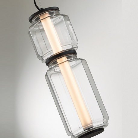 Ультрасовременная линия светильников JAM выполнена в стиле хай-тек. Стеклянные формы плафонов с геометричными гранями нанизаны на светодиодные акриловые трубки. Дымчатое стекло (цвет smoky) минималистично смотрится в сочетании с матовым черным металлом и белыми матовыми трубками. Интересной особенностью обладают малый и средний подвесы в линии — их можно использовать и как бра, и как потолочный подвес благодаря универсальному креплению 2 в 1.