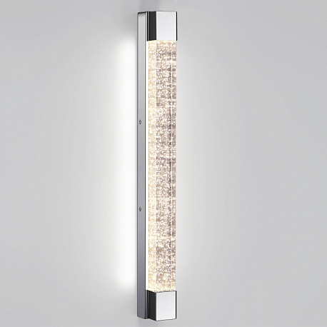 В линии Mirada используются в качестве рассеивателя прямоугольные слитки хрусталя с эффектом пузырьков, основание выполнено в двух цветах: латунь и черный брашированный. Свет светодиодов дает роскошное рассеивание в хрустале и обеспечивает игру света в пузырьках. Светильник представлен в цвете античная бронза и темная брашированная латунь.