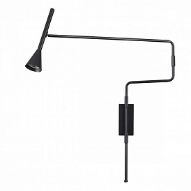 IZZY — минималистичный черный настенный светильник c поворотным плафоном. Диаметр корпуса — 12 мм, угол поворота плафона: 350° по вертикали и 180° по горизонтали. Выключатель — на плафоне.