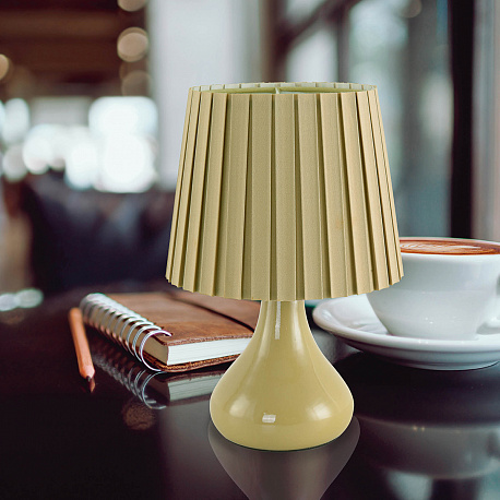 Настольные лампы в стиле модерн с керамическим основанием и текстильным абажуром легко впишутся в спальню, гостиную или детскую. Ухаживать за таким светильником очень просто. Трендовые цвета позволяют сочетать лампы с остальным интерьером. Мягкий, приглушенный свет создает атмосферу уюта. Выключатель ― на проводе.