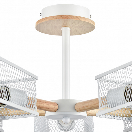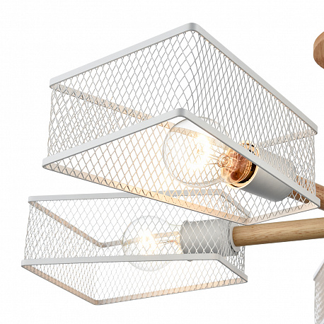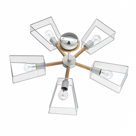 Линия светильников IRMA в стиле лофт подходит для помещений с низкими потолками. Трапециевидные плафоны из металлической сетки совершенно не скрадывают свет. Деревянный декор смягчает брутальность индустриального стиля.