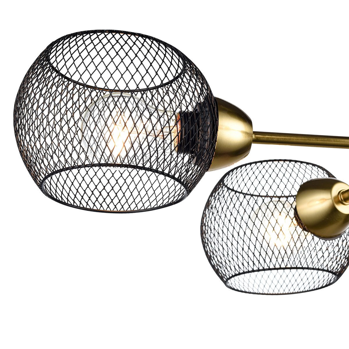 Люстра TUNARA выполнена в современной интерпретации промышленного дизайна. Индустриальный минималистичный вид светильнику придает сочетание черной металлической арматуры и бронзы. Круглые плафоны из сетки черного цвета добавляют глубину освещению, делая его более динамичным и выразительным.