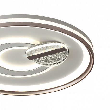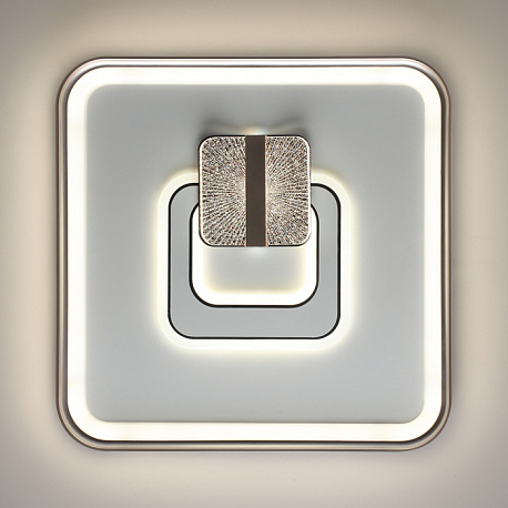 Светильники GEMINI имеют несколько контуров освещения, которые создают красивый декоративный эффект. В центре находится декоративный элемент в виде круга с акрилом ячеистой фактуры, который добавляет светильнику декоративной привлекательности. Светильник оснащен пультом ДУ.