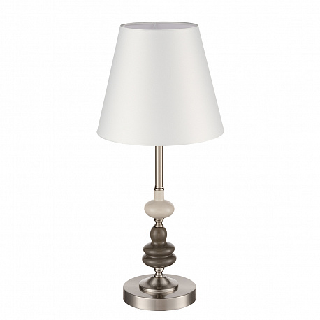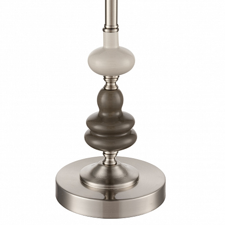 Тонкая изящная арматура в цвете никель украшена керамическим элементом необчной формы в коричнево-белом цвете. Классический белый плафон вечает всю композицию стильной линии KENTUKI. Благодаря полной коллекции линия позволит полностью укомплектовать гостинную, спальню или номер премиальной гостиницы.