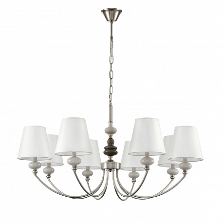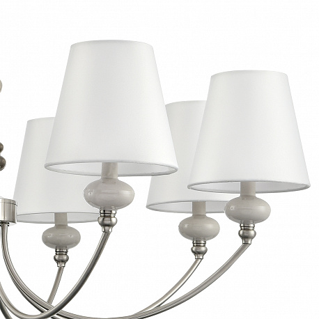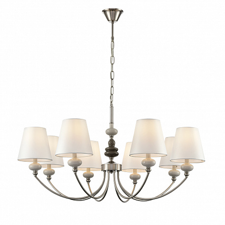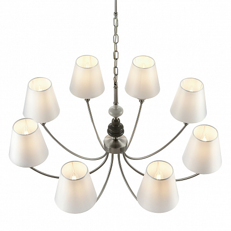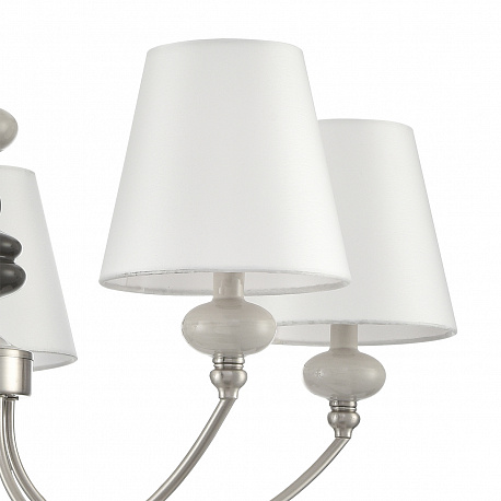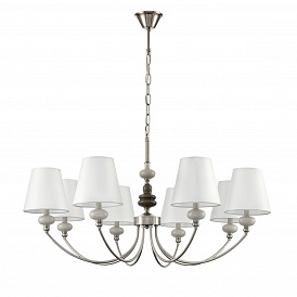Тонкая изящная арматура в цвете никель украшена керамическим элементом необчной формы в коричнево-белом цвете. Классический белый плафон вечает всю композицию стильной линии KENTUKI. Благодаря полной коллекции линия позволит полностью укомплектовать гостинную, спальню или номер премиальной гостиницы.