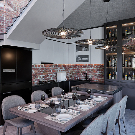 Линия CAMOMILE — воплощение минимализма и современного искусства. Дизайн светильников напоминает абстрактную скульптуру, где плавные линии и изгибы создают ощущение движения и легкости. Черный металлический каркас дополнен центральной светодиодной лампой, мягко рассеивающей свет.