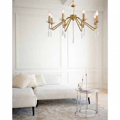 Линия SEVERINA — воплощение элегантности и утонченности. Ее изысканный дизайн с хрустальными элементами напоминает о роскоши дворцовых залов. Каждый из лучей словно приглашает свет танцевать, создавая атмосферу уюта и тепла. Золотистый оттенок шампань придает люстре благородство, а ее форма — классический шарм. Она станет идеальным акцентом в интерьере, добавляя нотку изысканности и подчеркивая вкус владельца. Эта люстра не просто освещает пространство, она наполняет его магией и гармонией.
