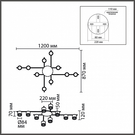 Серия BENUA — пример современного подхода к дизайну освещения. Качественный металлический каркас черного матового цвета дополнен центральным золотым диском. Рожки не провисают под действием силы гравитации. Большой размах рожков люстры и большое количество ламп с цоколем GX53 обеспечивает равномерное рассеивание света в комнате. Лампы в комплект не входят.