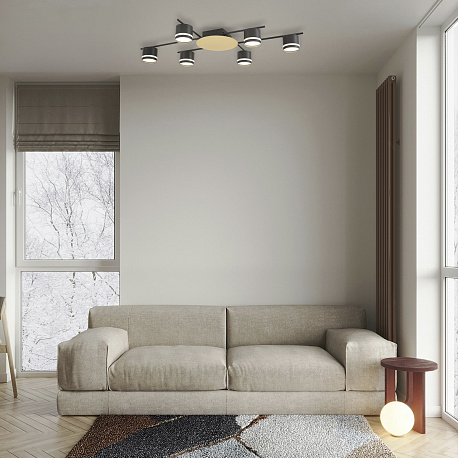Серия BENUA — пример современного подхода к дизайну освещения. Качественный металлический каркас черного матового цвета дополнен центральным золотым диском. Рожки не провисают под действием силы гравитации. Большой размах рожков люстры и большое количество ламп с цоколем GX53 обеспечивает равномерное рассеивание света в комнате. Лампы в комплект не входят.