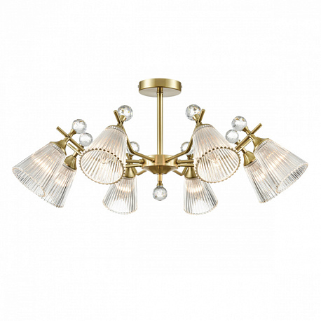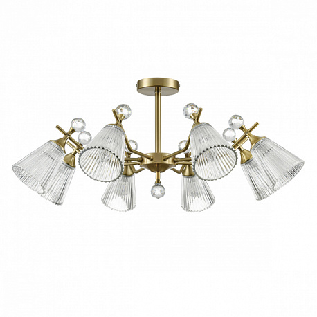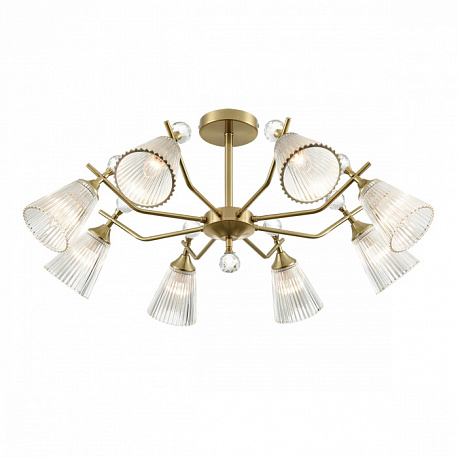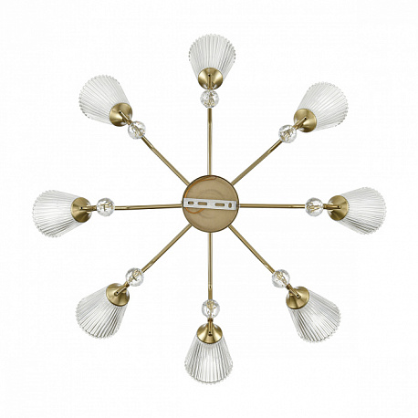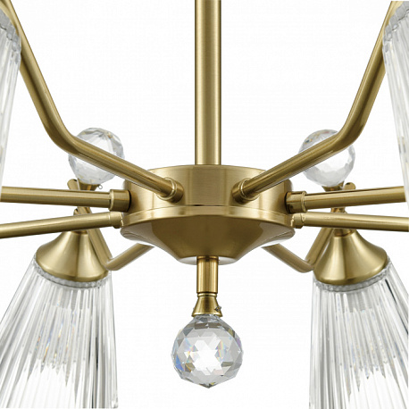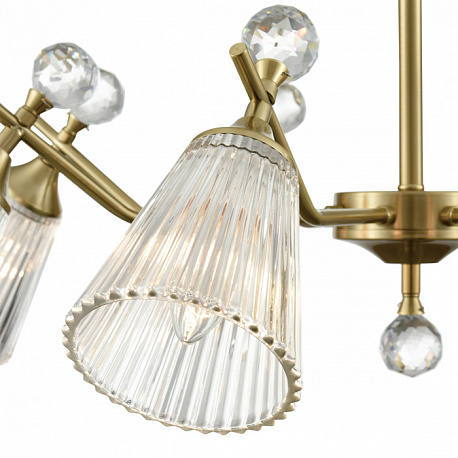 Линия потолочных классических светильников AURICA имеет стеклянные фактурные плафоны, расширяющиеся к внешнему краю. Благодаря такой форме и фактуре стекла свет красиво играет на поверхности плафонов, создавая интересный световой эффект. Декоративный элемент в виде хрустального шара в верхней части плафонов и нижней центральной части арматуры завершают общий дизайн светильников, придавая им законченный вид.