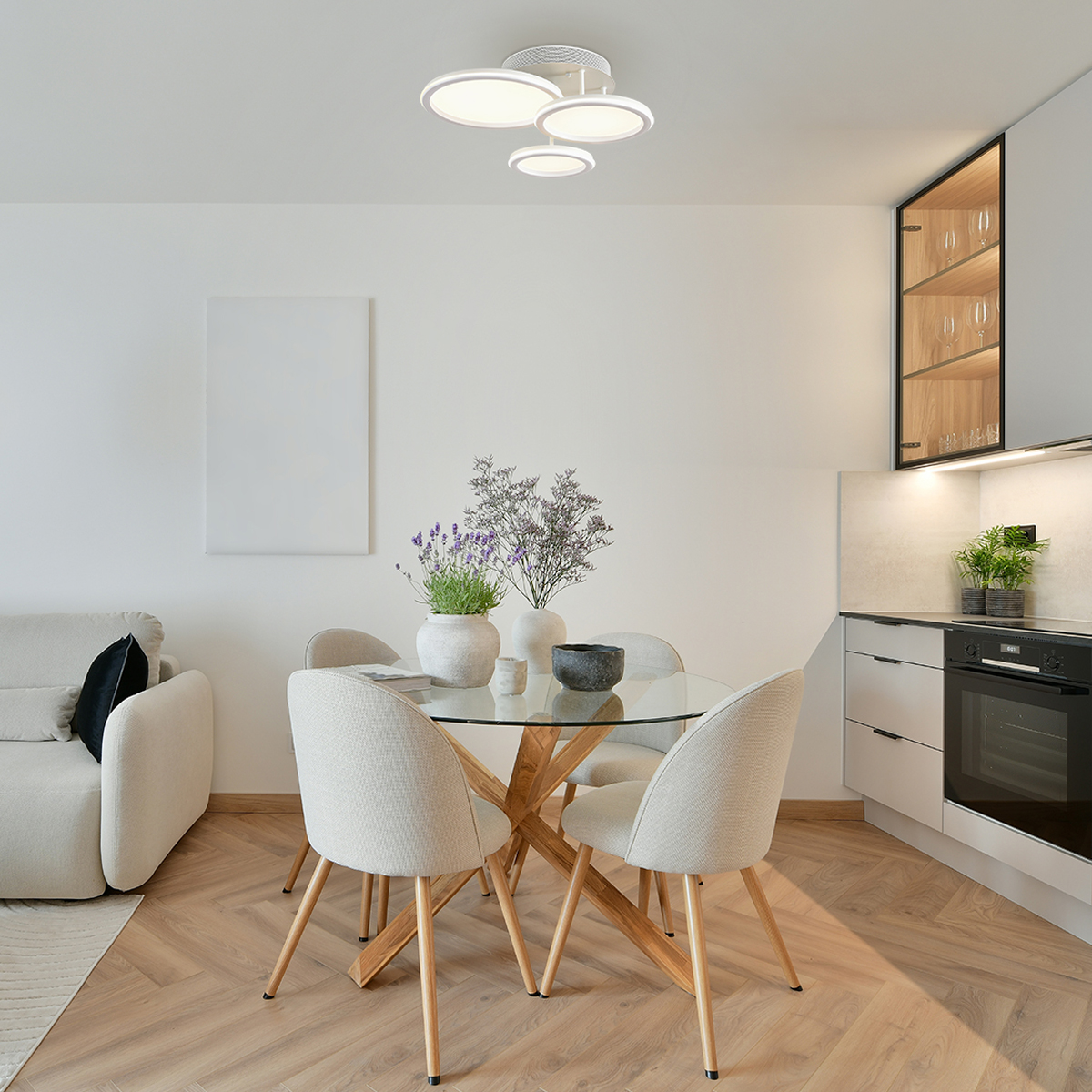 Линия интеллектуальных светильников ALIS SMART отличается современным дизайном, также их можно подключить к самым популярным сервисам умного дома с голосовым управлением: Яндекс Алиса, Siri Shortcut, Smart Life, Tuya. Технология Smart Home обеспечит комфортное управление светильником голосом, позволит настроить широкий спектр сценариев в зависимости от заката/рассвета, конкретного периода времени, при изменении статусов различных устройств, таких как датчики движения, открытие дверей и многих других. Супертонкие круги имеют равномерную подсветку и не слепят глаза. Такой тип люстры отлично подходит для современных интерьеров, особенно в стиле минимализм или хай-тек.