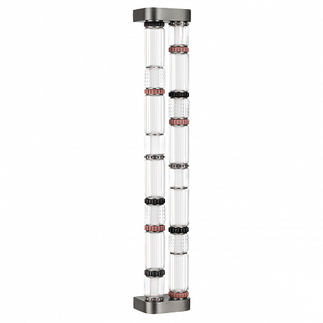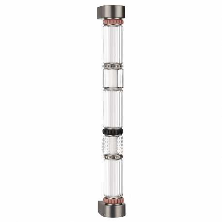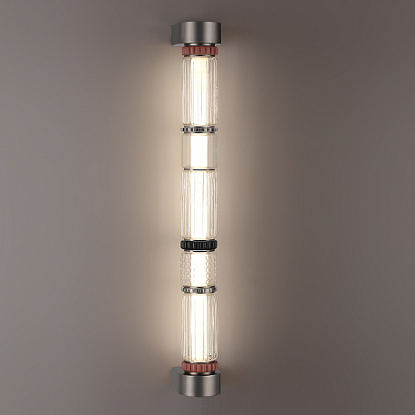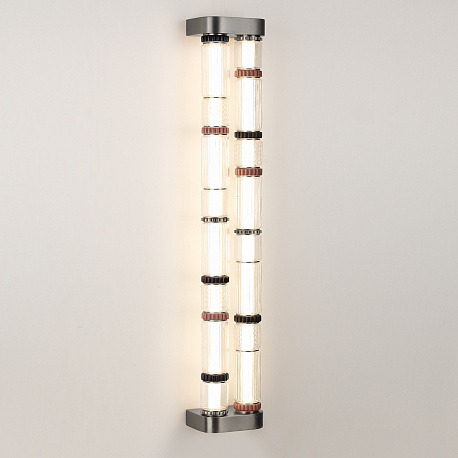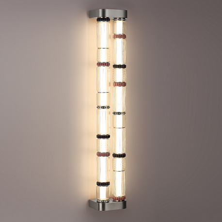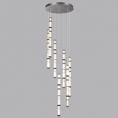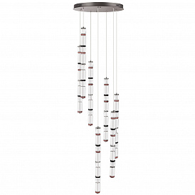 Силуэты светильников линии Collier обыгрывают образ колье, сверкающего многогранными элементами из стекла, металла и керамики. Линия выполнена в двух трендовых цветах: сатинированная латунь и сатинированный темный никель. Каскадный светильник линии Collier создан для просторных интерьеров с высокими потолками и вторым светом.