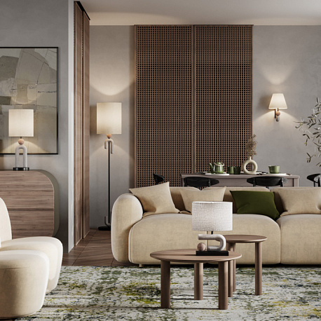 Линия светильников Bagel сочетает в себе природные цвета и поверхности. Мягкие оттенки камня, натуральные ткани и матовый металл создают ощущение комфорта и единения с природой. Декоративные элементы выполнены из высококачественного полирезина, имитирующего каменную поверхность. Коллекция дополнена абажурным подвесом серого цвета и торшером .