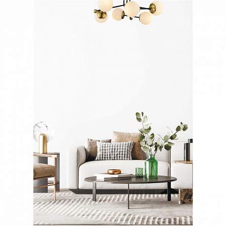 Линия MELODY отличается элегантностью и простотой. Каждый светильник коллекции исполняет свою мелодию современного стиля. Черный металлический каркас образует гармоничную конструкцию в виде прямых лучей. Они дополнены аккуратными золотыми акцентами и изящно поддерживают белые стеклянные плафоны в виде шара. Строгие линии и геометрическое расположение светильников создают мелодичный баланс, делая эти светильники идеальными для современных гостиных, столовых зон, ресторанов и кафе. Удачное сочетание черного каркаса и белых плафонов напоминает ноты на нотной линейке, а сферические элементы дизайна придают серии игривость и лаконичность.